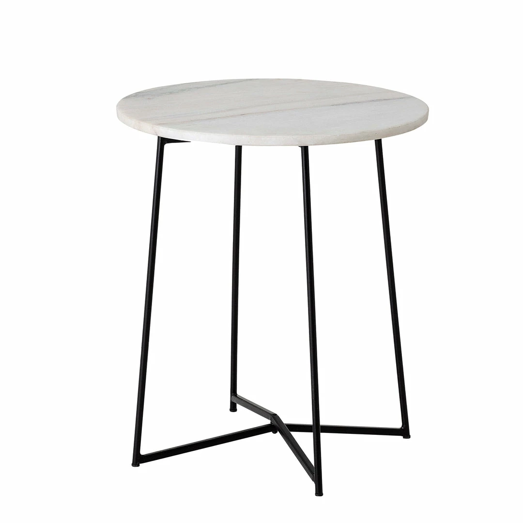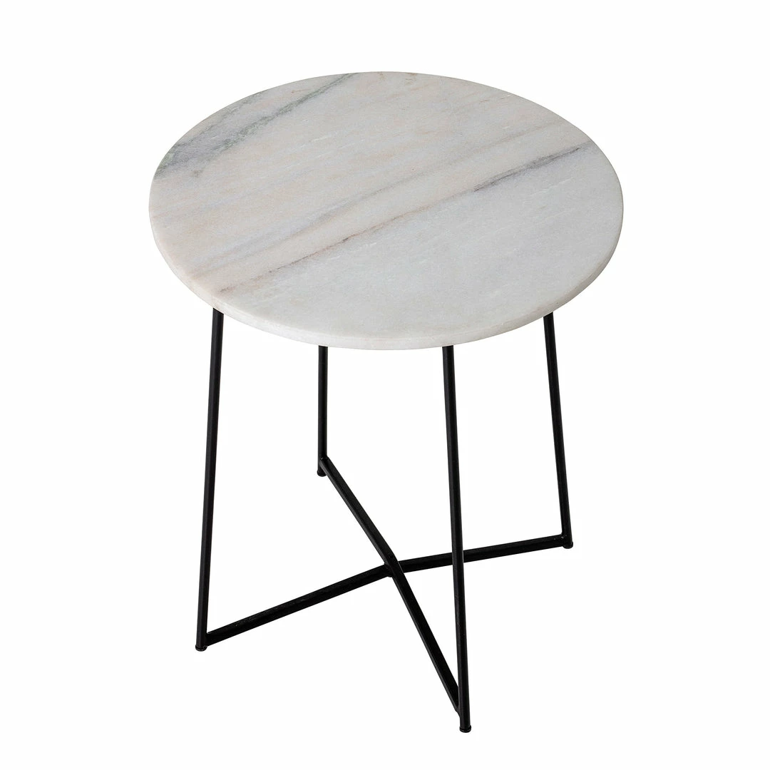 Small coffee or sidetable in white marble and iron legs. Style with your favorite home accessories for the perfect look.Â