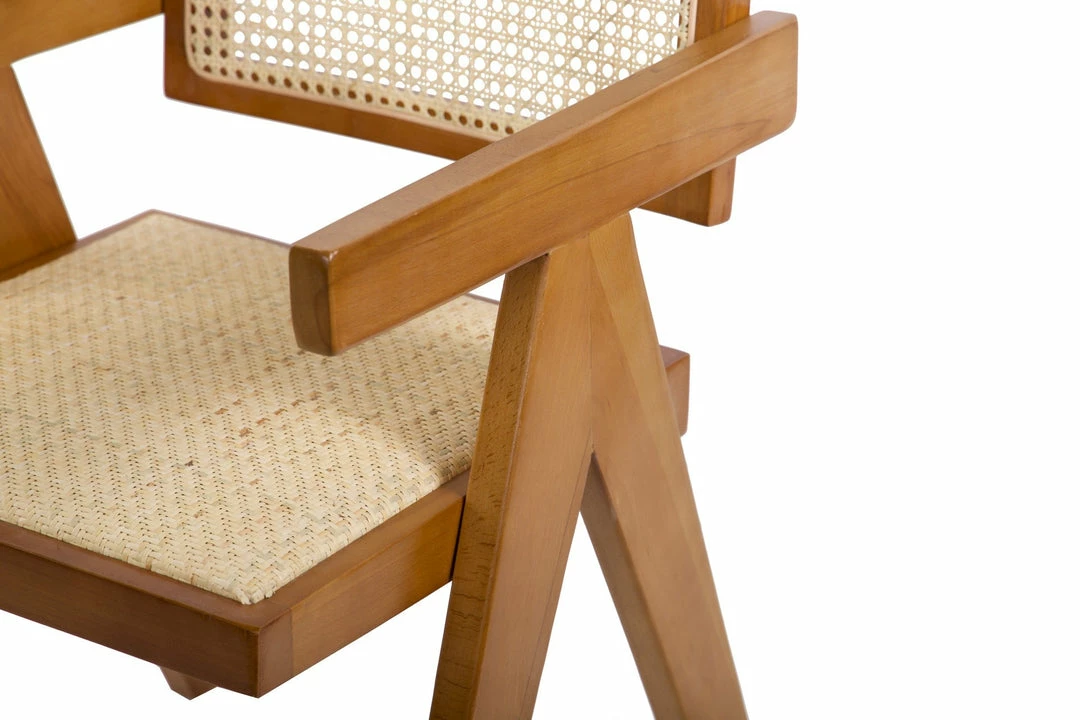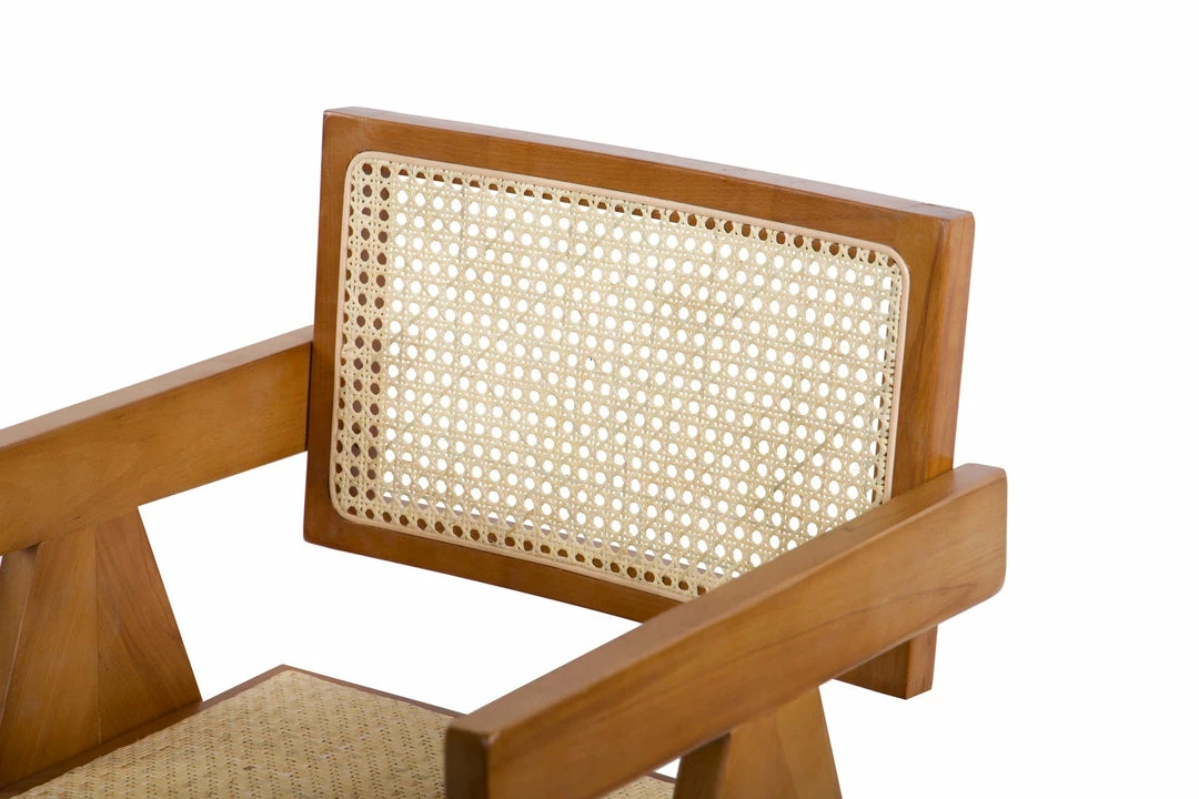 This iconic design is inspired by the marvellous work of Pierre Jeanneret and has been designed to bring you mid-century with a modern twist. Ornately crafted in teak wood and a rattan cane seat and backing, this accent chair would make a beautiful addition to your living room, home office or dining room.