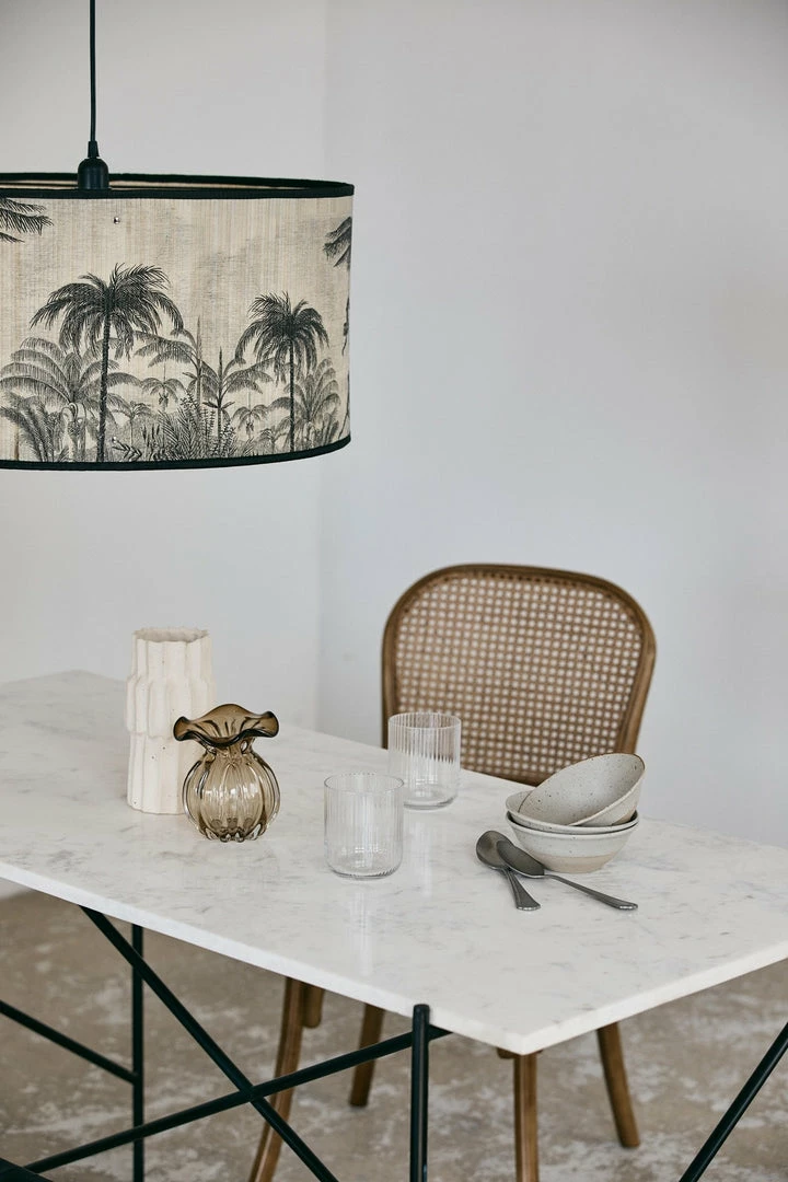 If you’re going to have a tropical-inspired light in your home then this is the one to have! Not only does the print evoke a jungle oasis, but the materials do too! And what’s more, the weathered effect of the print against the bamboo background gives us total beach hut vibes! Combining robust bamboo with an elegant monochrome print, this statement ceiling light is just bursting with character, so what’s not to love?!