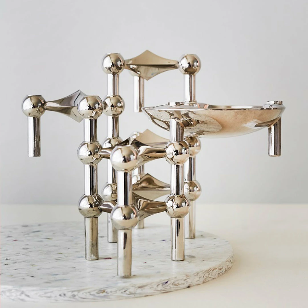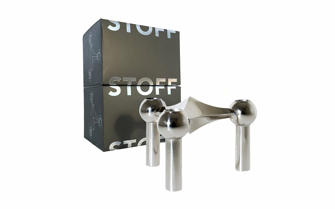 The chrome candle holder is the very first and original colour of the STOFF Nagel design. Today it is still the top-selling edition and a collector’s item in homes around the world. You can shape and combine it as you prefer and create your own expression to underline its sculptural properties in your own unique way. The candle holder was originally designed by Werner Stoff for Hans Nagel in the 1960s. The design touches the Scandinavian virtues and minimalistic style when it elegantly catches the light in your home and shapes itself with its surroundings, yet it holds contrast to the edgy, stylistic and functional design.