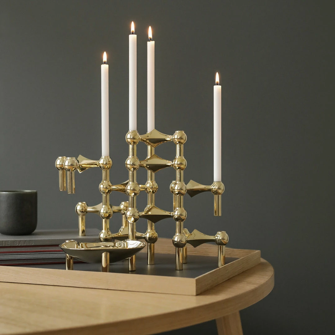 The solid brass candle holder is the most exclusive member of the STOFF Nagel candle holder family. Use it with tapered candles or leave it merely as a decorative sculpture. You can shape and combine it as you prefer and create your own expression to underline its sculptural properties in your own unique way. The candle holder was originally designed by Werner Stoff for Hans Nagel in the 1960s. The design touches the Scandinavian virtues and minimalistic style when it elegantly catches the light in your home and shapes itself with its surroundings, yet it holds contrast to the edgy, stylistic and functional design.